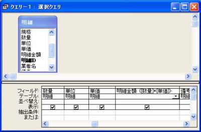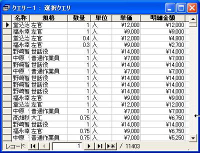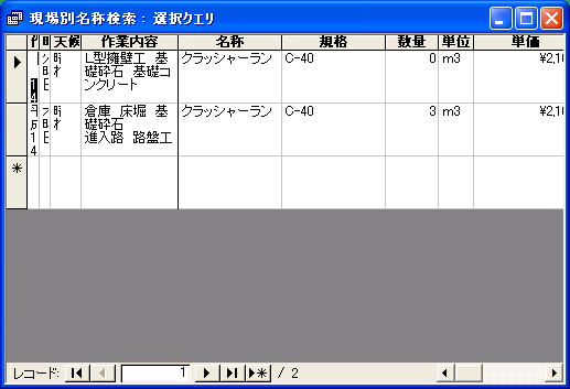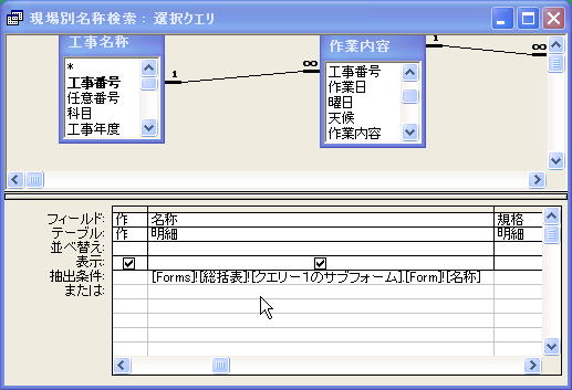 業務データベースVの総括表から名称を条件にデータを抽出するクエリーだ。