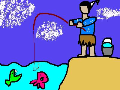 彼は毎日、海にいっては魚をとって、刺身にしては、干物にしておりました。
