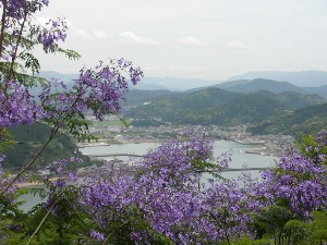 南郷道の駅から栄松港を見る・ジャカランダ